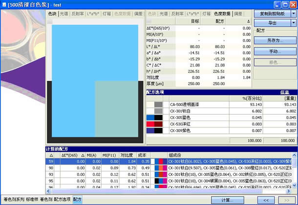2.用于淺色、深色、鮮艷色和透明、半透明、遮蓋率計(jì)算的配方。