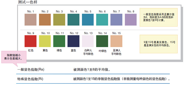 光源顯示的色調(diào)越接近自然原色,其顯色性就越好(或越高)。顯色指數(shù)是對燈或其他光源顯色性的量化結(jié)果,旨在提供客觀標準。顯色指數(shù)表示被測光源和標準光源※ 的接近程度。MAX值為100。顯色差異越大,值越小,說明被測光源顯示的顏色和自然原色的差距越大。