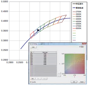針對LED行業(yè)普遍關(guān)注的按顏色分級的問題,CL-500A配備軟件可提供LED色度分級的功能。
